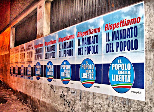 Ma ciò che ci turba e rende inquiete le nostre giornate è un fatto ancor più singolare: mentre è in atto una seconda sessione di pulizia straordinaria, compaiono numerosi ed impudici sui muri puliti appena il giorno prima manifesti elettorali del PDL.